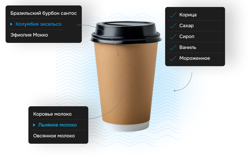 Создавайте неограниченное число комбинаций продаваемых товаров, а также добавок к ним.